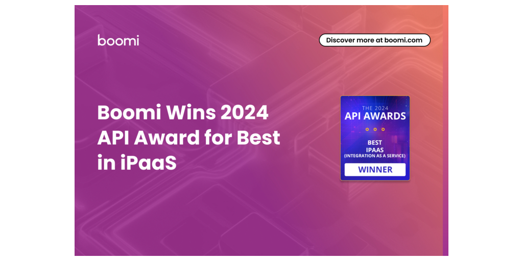 賓夕法尼亞州康舍霍肯--(BUSINESS WIRE)--(美國商業資訊)-- 智慧整合和自動化領導者Boomi™驕傲地宣布,其已獲得「最佳iPaaS(整合平台即服務)」類別的2024年API獎。這項久負盛名的榮譽彰顯出Boomi企業平台在API和整合技術領域的卓越設計、工程和創新。
